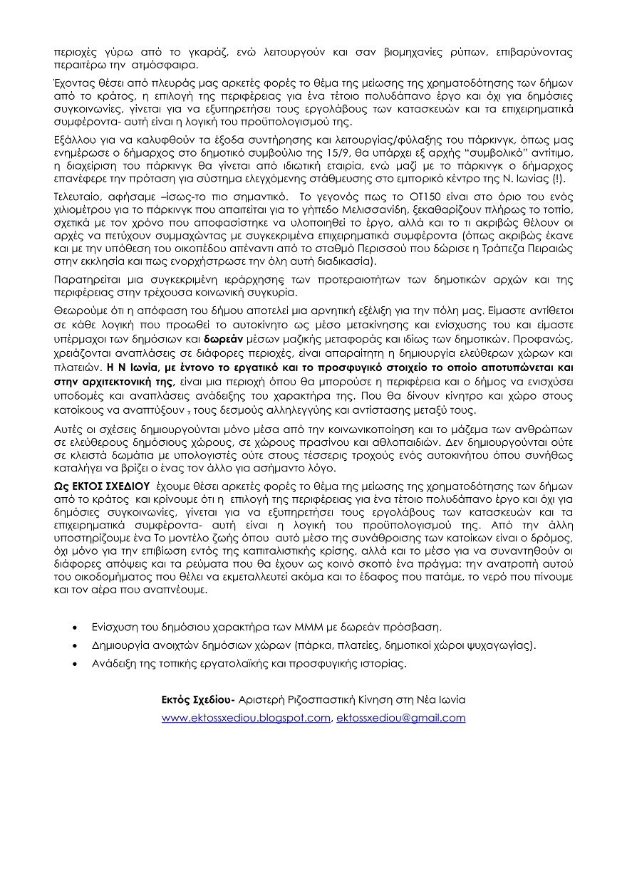 Η ΕΚΤΟΣ ΣΧΕΔΙΟΥ ΝΕΑΣ ΙΩΝΙΑΣ ΓΙΑ ΤΟ Ο.Τ. 150